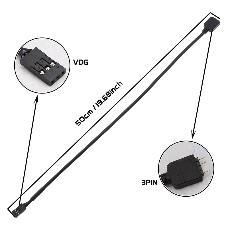 Create idea 2pcs 5V 3Pin to VDG RGB Conversion Line Cable Connector 50cm for Computer Motherboard with 2 Copper Needle Optimal Performance