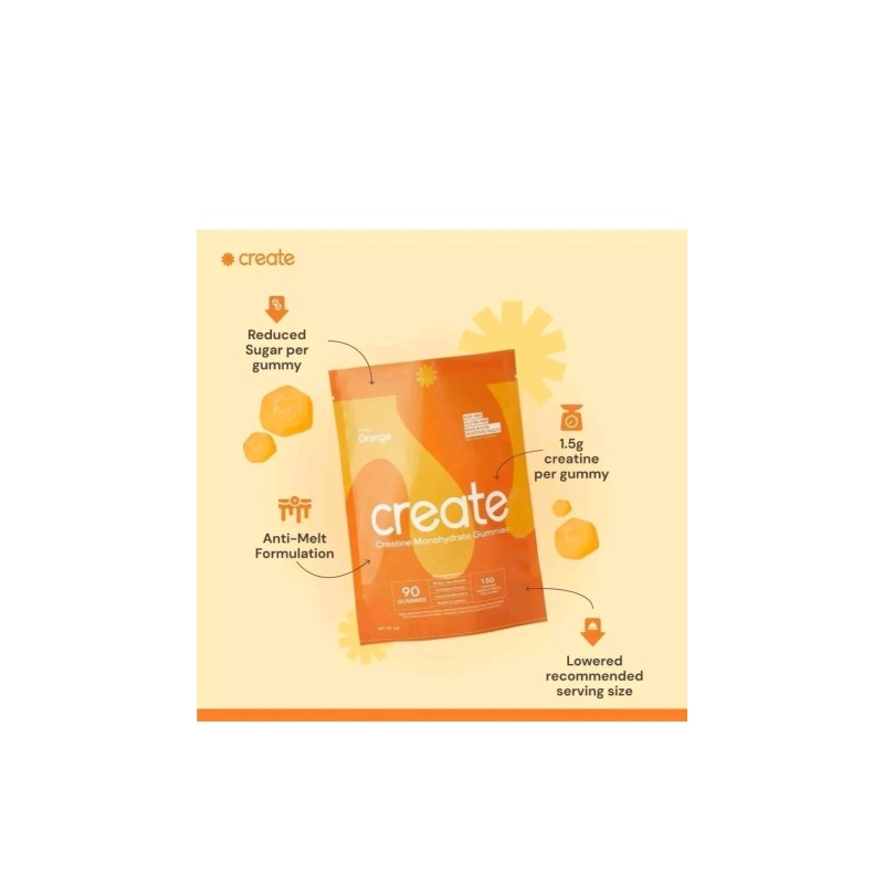 Create Monohydrate Gumies for Men & Women 1.5g of Creatine per Gummy Orange,90ct