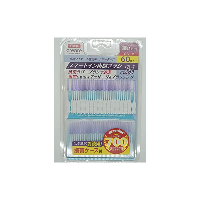Create Smart-In Interdental Brush 2(SS) - 4(M) Metal Wire Free, Rubber Type, Value Pack, 60 Sticks x 4 Pieces