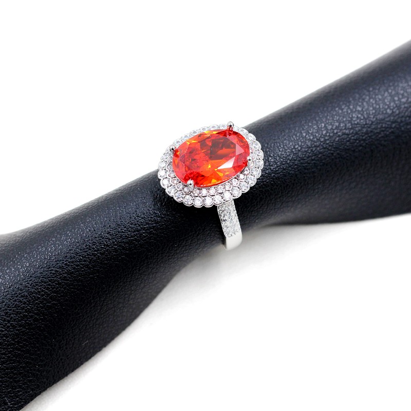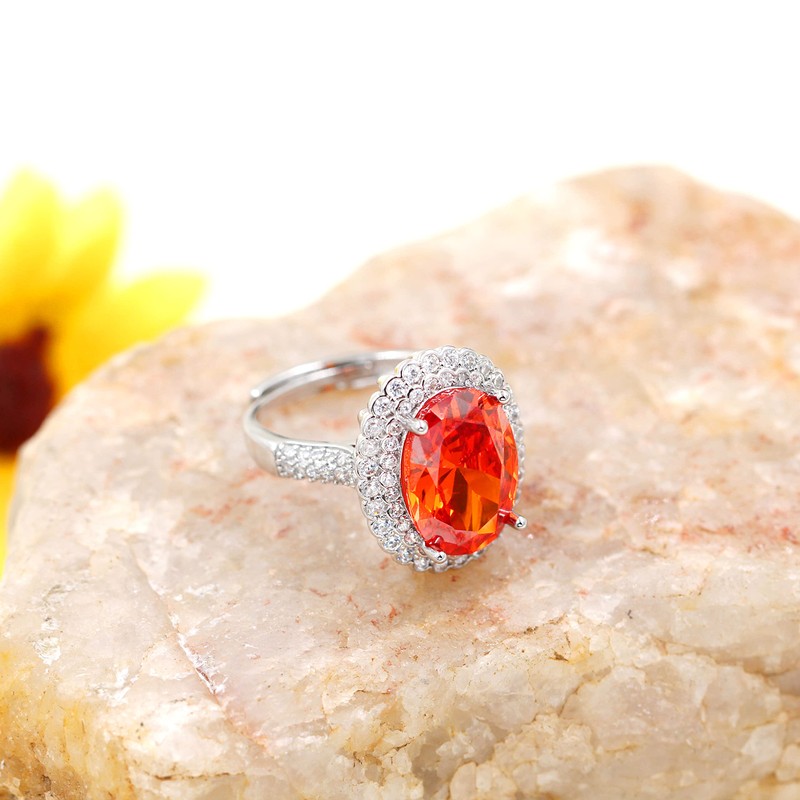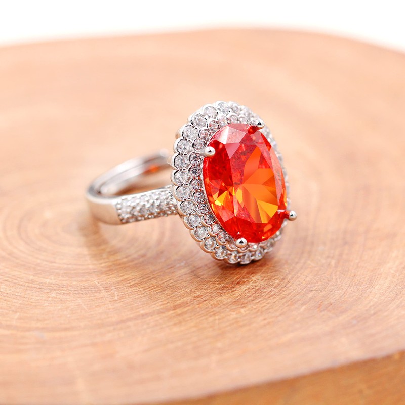 Created Orange Garnet Birthstone Rings Oval Engagement Wedding Ring Women Adjustable Open Size Y664 (Orange Red)