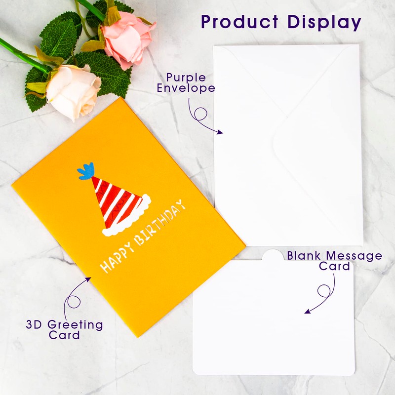 - 3D Cards measures 4.9" x 6" when it folded .and comes with a matching envelope and a transparent bag. The envelopes feature fancy materials and are Sealable for easy mailing. reach out to women/men/wife /husband/friends/kids etc on their birthdays by sending them happy birthday cards