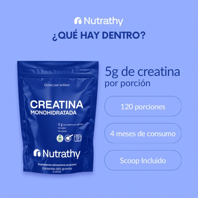 creatina 100% pura, creatina sin sabor, creatina monohidratada Nutrathy, creatina 650g, suplemento para ganar masa muscular, creatina para fuerza y resistencia, creatina 130 servicios, creatina para entrenamiento intenso