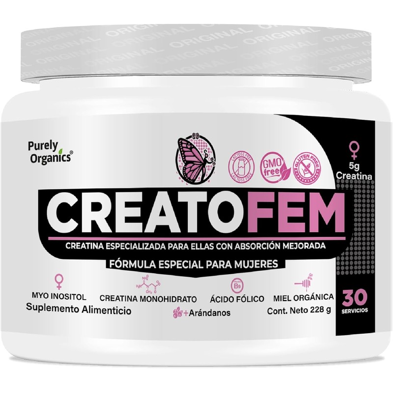 Descubre Creatofem en Polvo de Purely Organics: el impulso que toda mujer necesita. Potencia tu entrenamiento con nuestra mezcla orgánica de creatina, inositol y vitamina B9. Siente la diferencia con cada scoop. Únete a la revolución de bienestar y rendimiento.