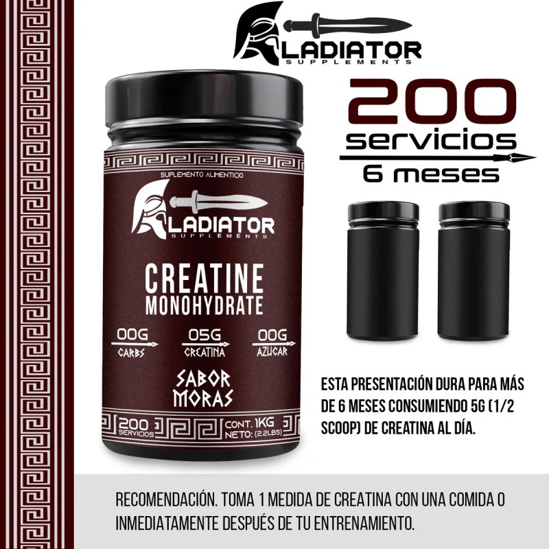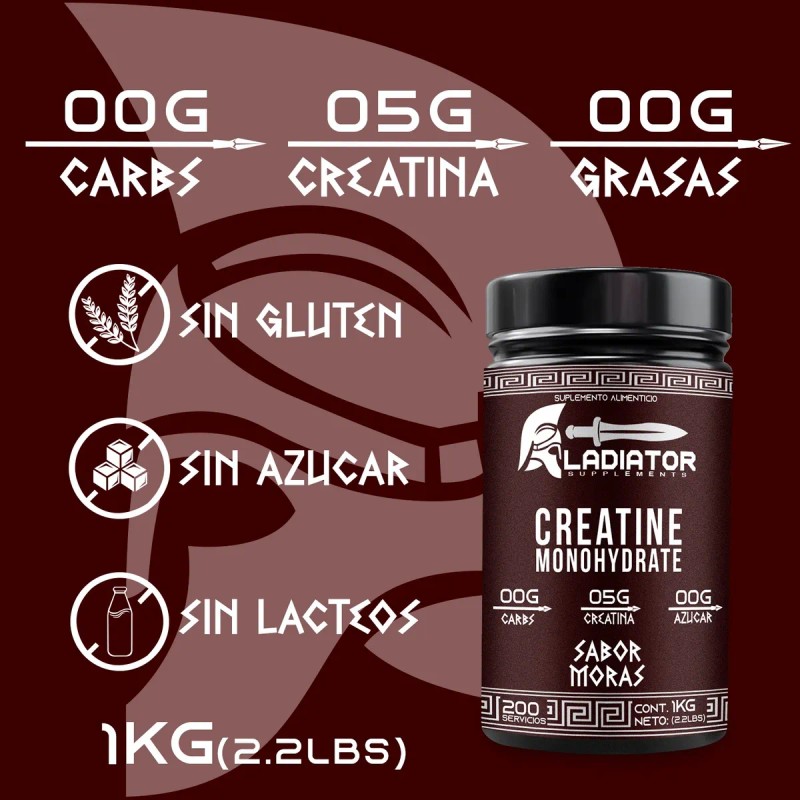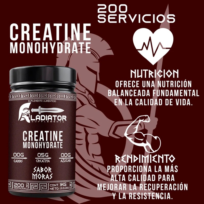 creatina gladiador monohidratada, creatina sabor moras, creatina sabor mango, creatina 1kg 200 servicios, suplemento para fuerza y resistencia, creatina para entrenamiento intenso, creatina para recuperación muscular, creatina con sabor natural