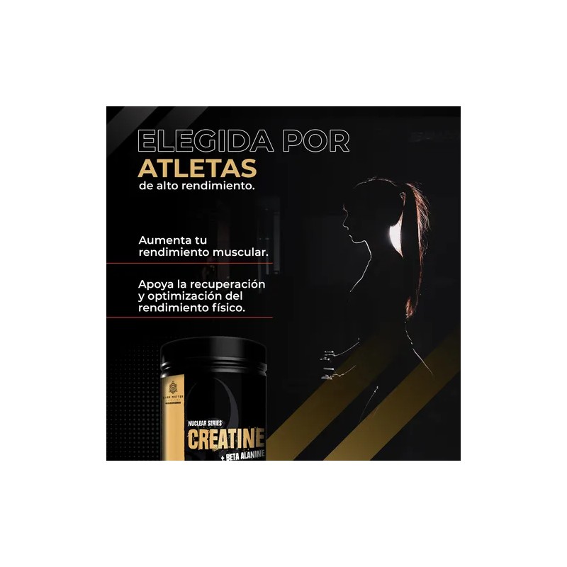 Creatina Monohidrato de Dark Matter, es el suplemento con el mayor respaldo científico en la actualidad, además viene adicionada con 3g de Beta Alanina, además de los 5g de Creatina Monohidratada, sin duda un gran combo para aquellas personas que buscan de promover la síntesis de ATP. Mayor energía en los músculos. Por tanto, los deportistas podrán entrenar más tiempo sin que sus músculos se cansen ni tampoco sientan fatiga.