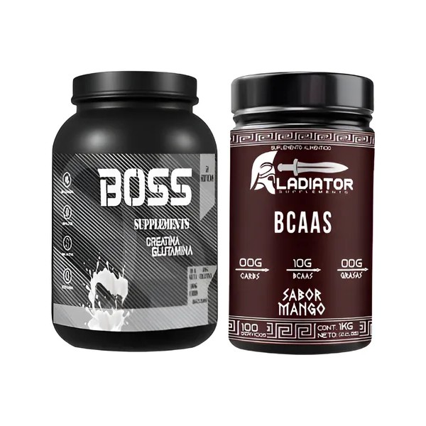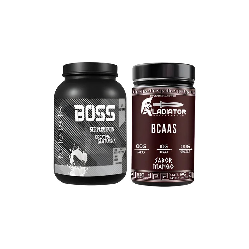 Creatina Monohidratada Boss 1kg + Bcaas Gladiator 1kg Natural- Mango