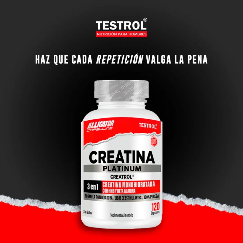 Creatina Platinum Testrol | 120 Cápsulas | Aumento de Fuerza y Volumen Muscular