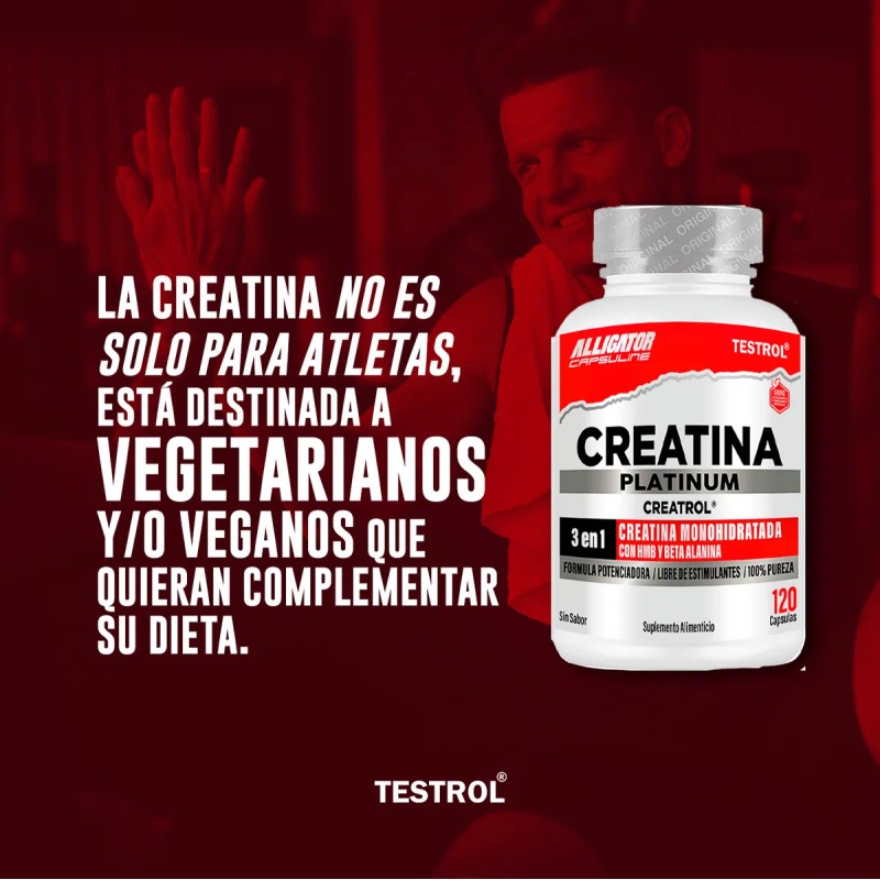 Creatina Platinum Testrol | 120 Cápsulas | Aumento de Fuerza y Volumen Muscular
