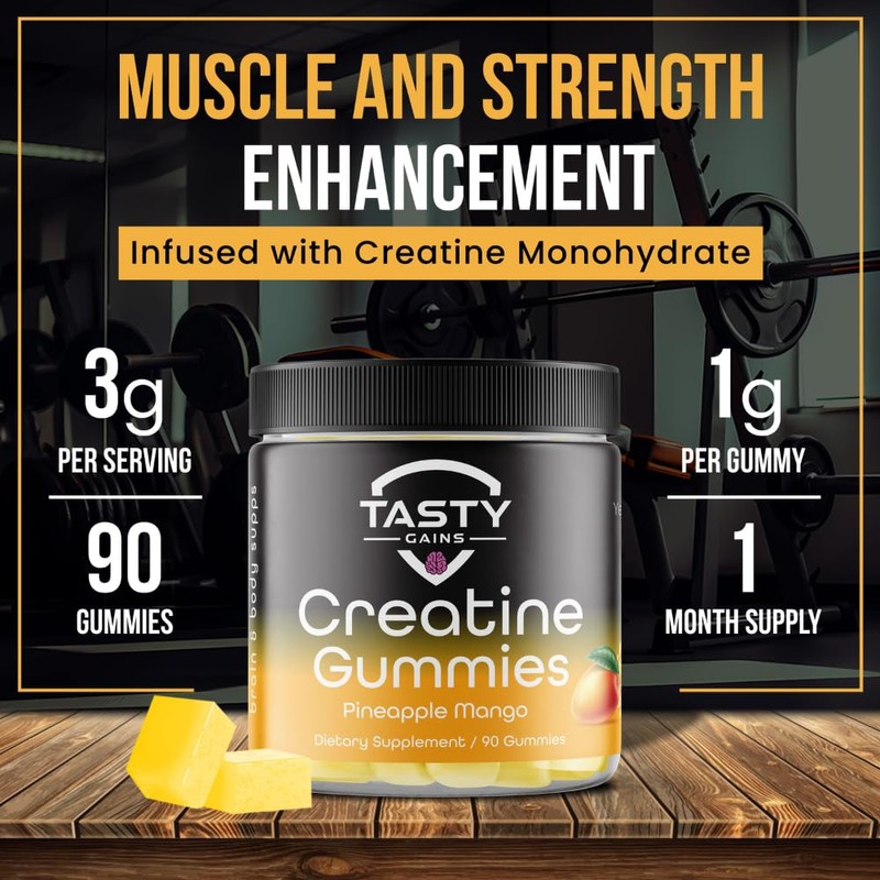 - Muscle Growth - Creatine is proven to increase muscle mass, leading to a more defined look. Just take Tasty Gains creatine gummies & watch your muscles grow as you continue to workout