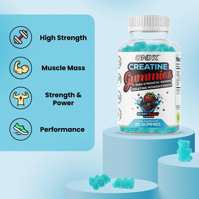 - Energy-based formula – ONYX NUTRA Creatine Gummy was carefully designed for women and men to increase your athletic performance & help you generate more power and recover faster these vegan gummies are here to help you achieve your fitness goals!