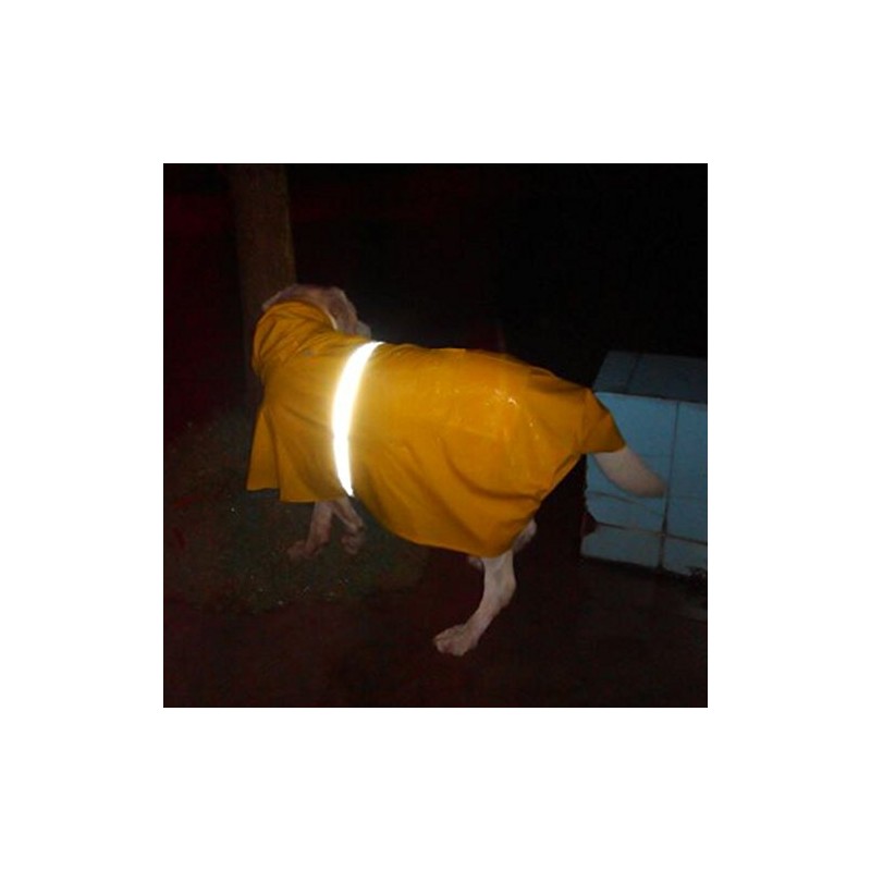 This heavy-duty, waterproof vinyl rain jacket keeps pets dry in wet weather and saves from the hassle of wet dog smell and extra coat maintenance. Features a drawstring hood, leash opening, and a handy back pocket with flap closure. Elastic leg straps and adjustable belly strap ensure a secure and comfortable fit. Added reflective strip on back provides extra visibility in the rain. Wipe clean with a damp cloth or sponge. If the dog has a stout build, select one size larger. **Size Instructions:** Size S: Fits pet's Back 11.8" to 13.8", Neck 10.2" to 12.2", Chest 15" to 16.9". Size M: Fits pet's Back 15.7" to 17.7", Neck 13" to 14.6", Chest 20.5" to 23.2". Size L: Fits pet's Back 19.7" to 23.6", Neck 15.4" to 17.36", Chest 25.2" to 28.3". Size XL: Fits pet's Back 23.6" to 27.6", Neck 18.5" to 20.5", Chest 29.9" to 33.1". Size XXL: Fits pet's Back 30.7" to 33.5", Neck 24.8" to 27.2", Chest 37.8" to 41.3". **Notice:** The measurement may have 1-3cm (0.39-1.18inch) inaccurate errors; Due to take in sunlight and the monitor, pictures may have a slight chromatism problem. This is inevitable.