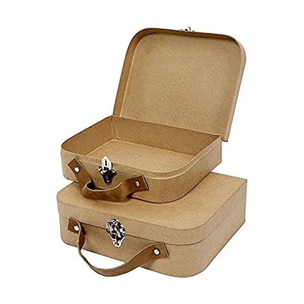 Creativ 100263 22.5 x 18 x 6.55 cm Papier Mache Suitcases 2 Assorted, Brown