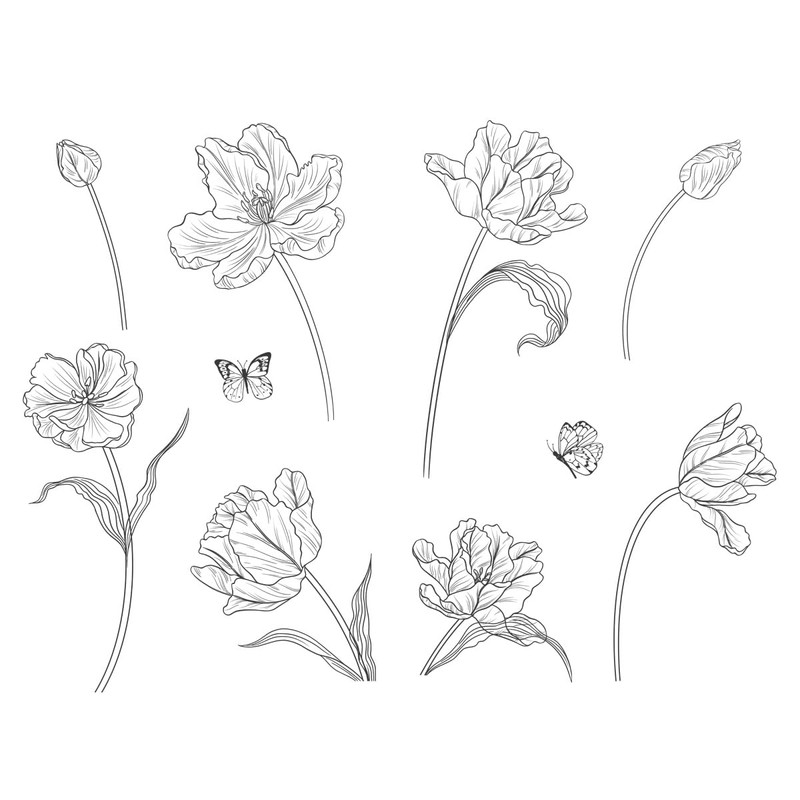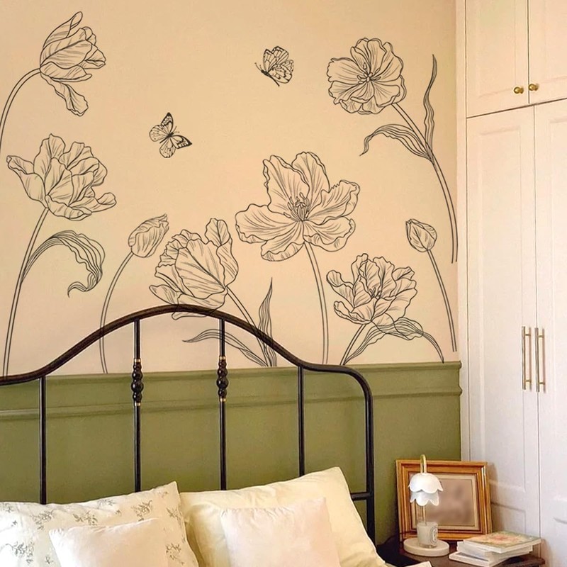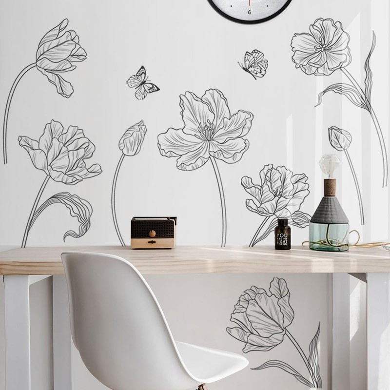 - 🌷UNIQUE DESIGN: Black and white tulip bouquet using watercolor line painting style, 8 black tulips, beautiful and elegant, two black butterflies flying, full of ins cold wind. Wall stickers are suitable for any design. The combination of flowers and leaves can decorate the walls beautifully, creating a vivid and dreamy picture in your room. You'll be very satisfied when you're done!