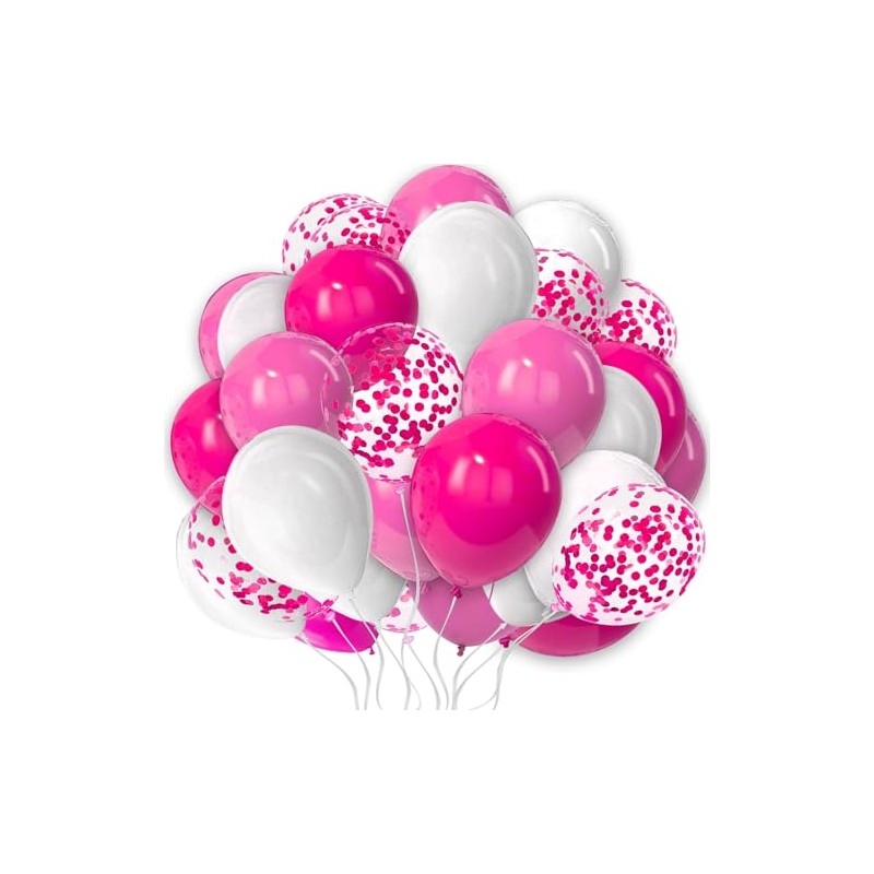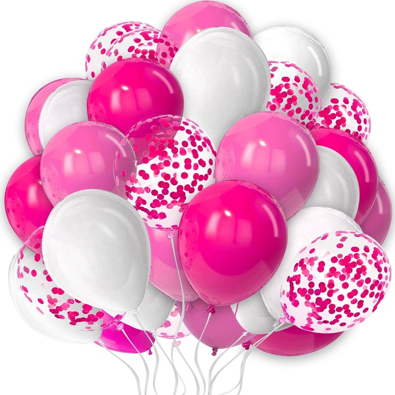 - PACKAGE INCLUDE: 25 pcs of 10 inch balloons pack in White Pink Hot Pink color and confetti Balloons. Get creative and experiment with different ways to display them – create a balloon arch, pair with foil balloons, add to festive garland, put heart shaped balloons, glitter or rose petals inside, or add ribbon to give them a special touch.