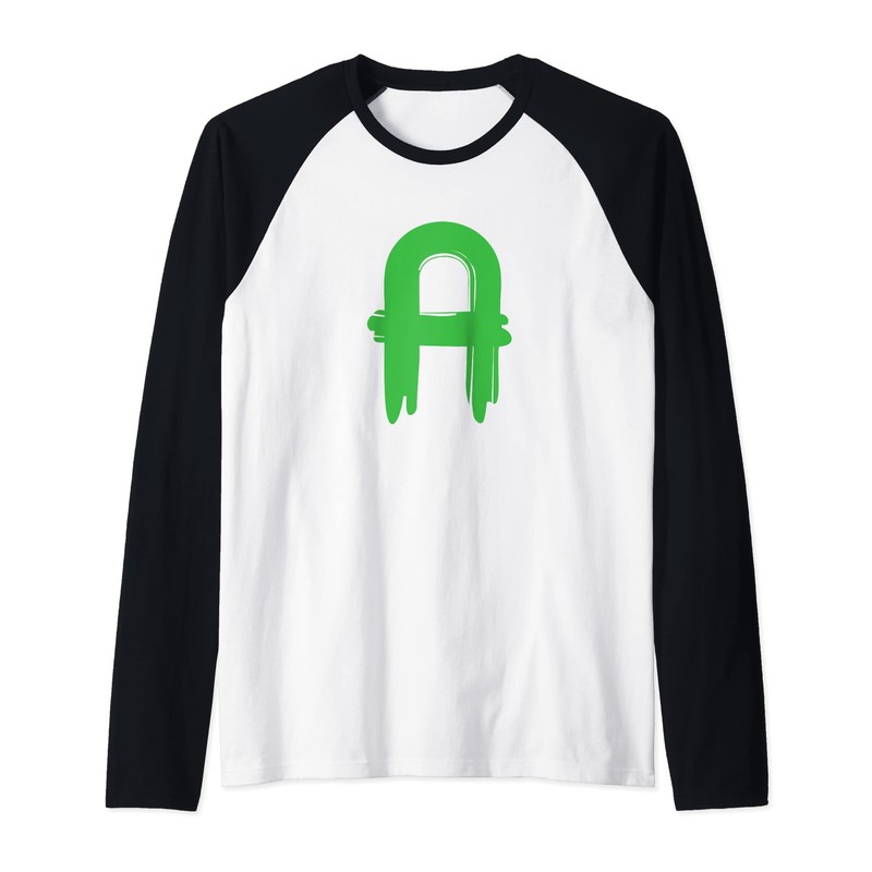 Creative Bold Green Letter A - Design Alphabet - Marker Raglan Baseball Tee