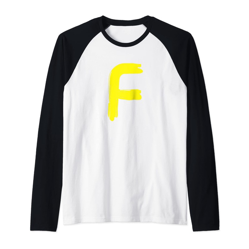 Creative Bold Yellow Letter F - Design Alphabet - Marker Raglan Baseball Tee