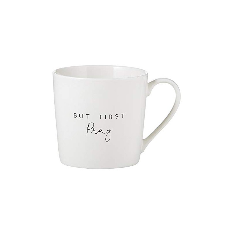 Creative Brands Faithworks - Inspirational White Bone China Café Mug/Cup, 14-Ounce, But First Pray