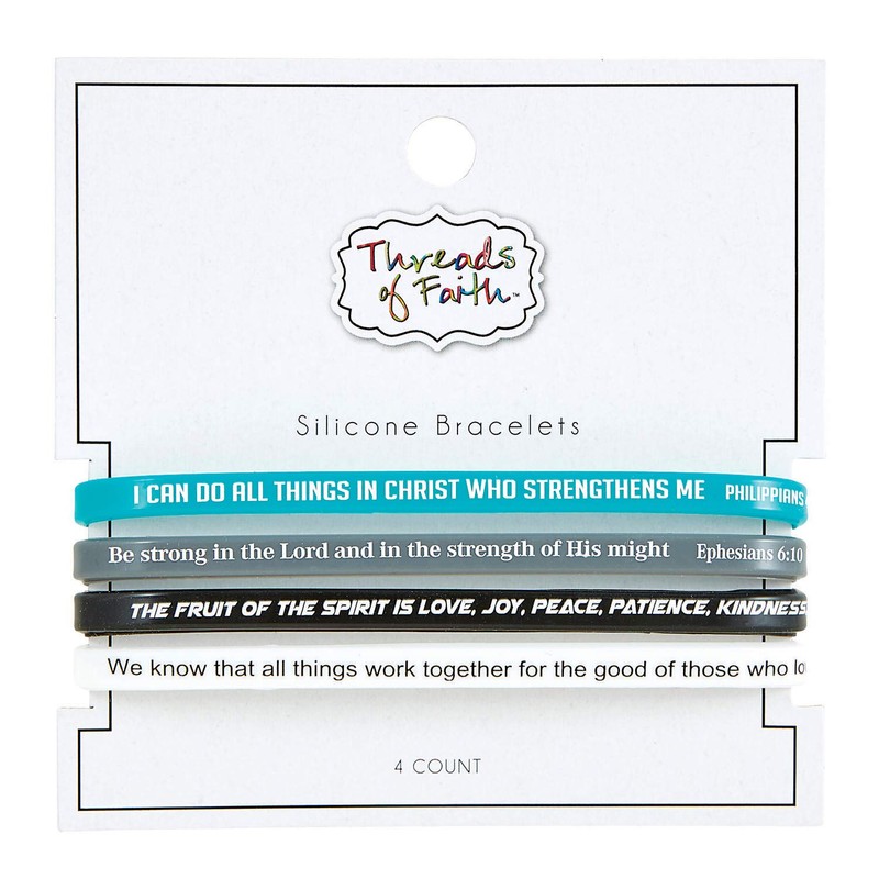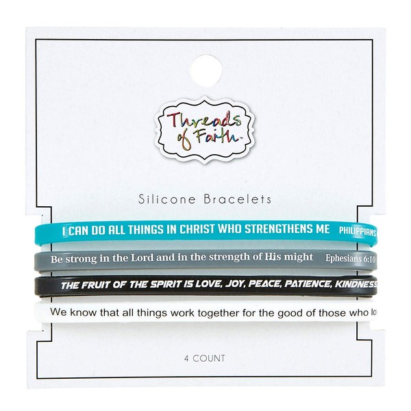 Creative Brands Faithworks - Threads of Faith Silicone Bracelet Set, 4-Pack, Scripture