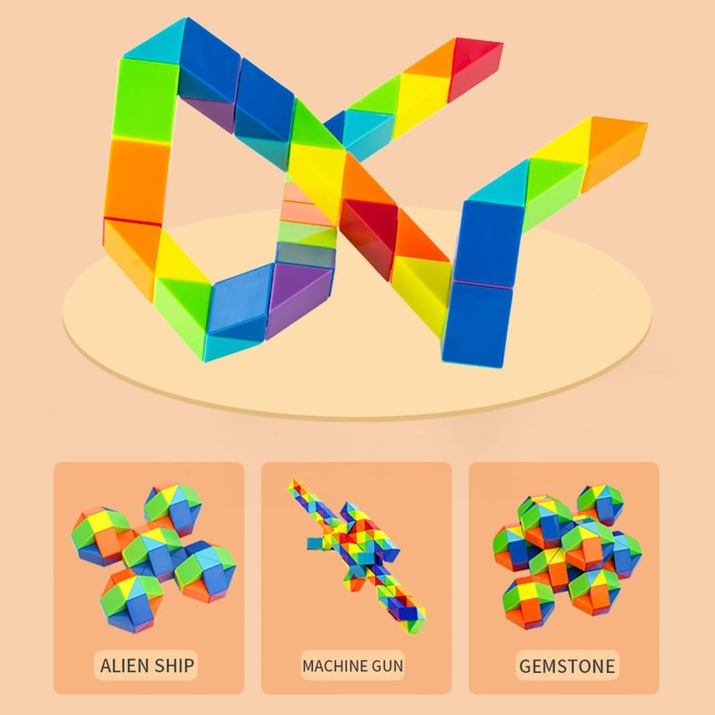 - 6.[Creative Toy]: Just open your mind, use your imagination, be creative, then you will get many kinds of shapes with this magic snake cube toy! With this toy, kids will improve the create imagination, hand-eye cooperation, etc.