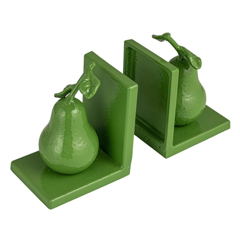- A charming pair of bookends featuring pear designs in a vibrant green finish