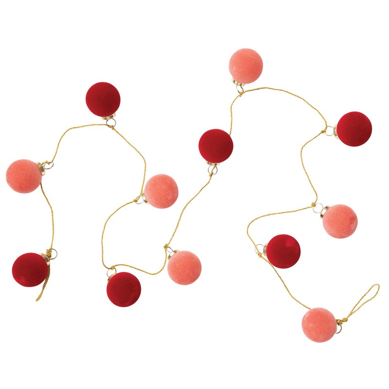 Creative Co-Op 72" L Flocked Glass Ball Ornament w/Gold Cord, Pink & Red Garland