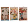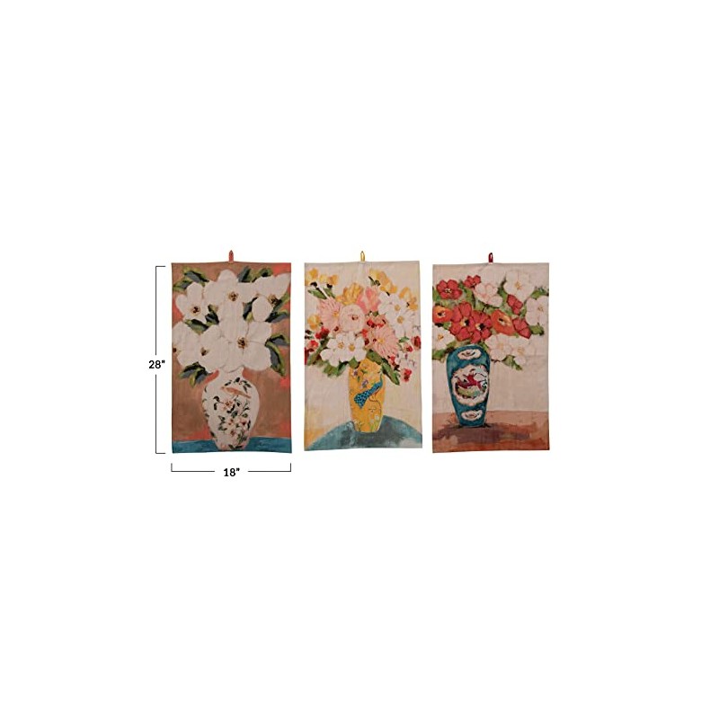 - Set of 3 multicolor cotton chambray printed tea towels with flowers in vase prints