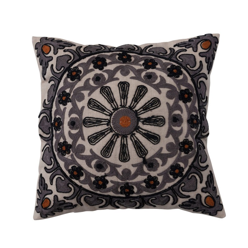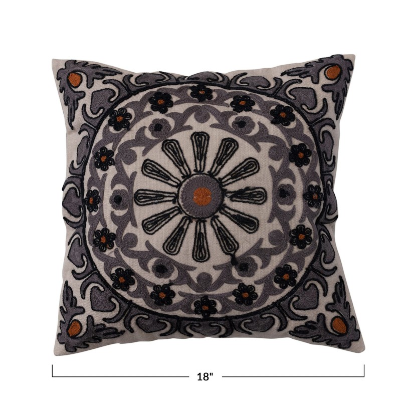 - This global throw pillow features durable cotton construction adorned with intricately embroidered floral designs