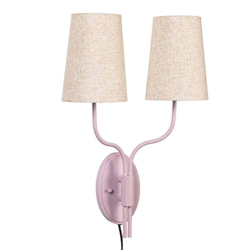 Creative Co-Op Metal Double Wall Sconce with Powder Coating, Linen Shades and Inline Switch, Lavender Color