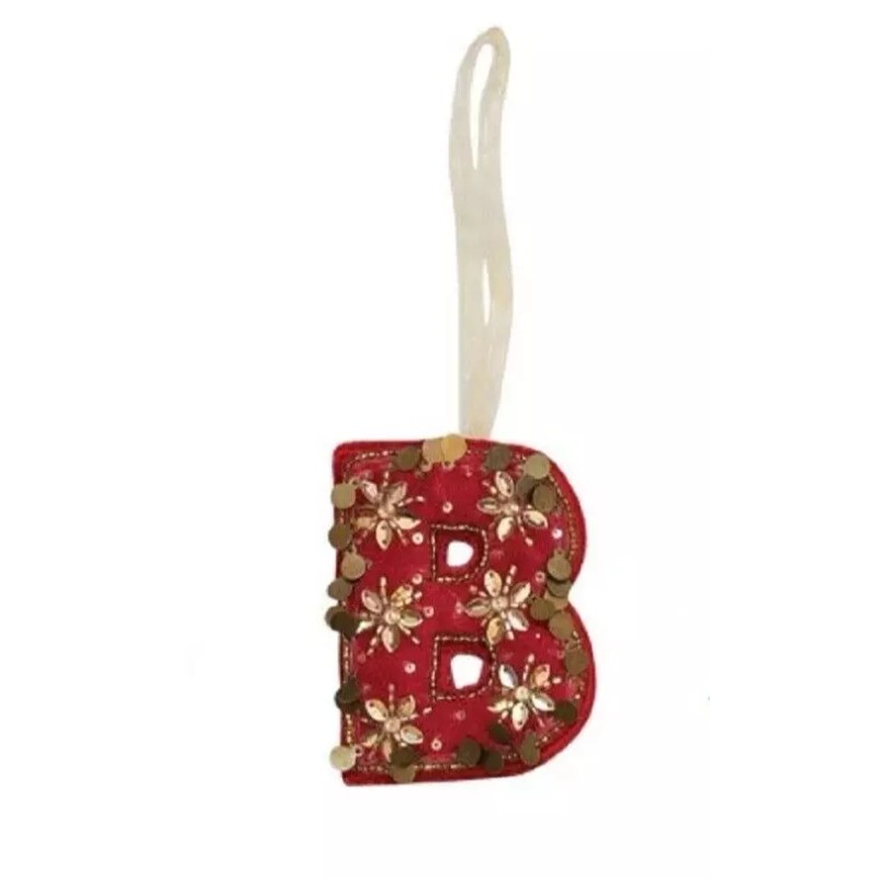 Creative Co-Op Monogram Initial Red Velvet Beaded Ornament Letter "B" 3 1/2"H