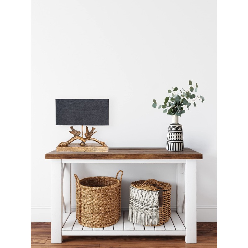 Table Lamps for Living Rooms, Nurseries, Offices and Bedrooms This table lamps is neatly crafted from resin. You can place them in your foyer, or use them as bedside lamp Pair of birds on a Tree Branch Design The bed lamp's elegant tree branch design is finished in gold. It is complemented by a contrasting rectangular linen shade made with 100% flax.