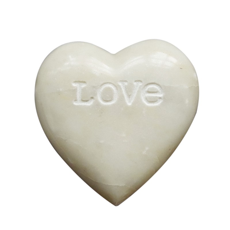 Creative Co-Op Soapstone Heart Decoration Engraved Love,White