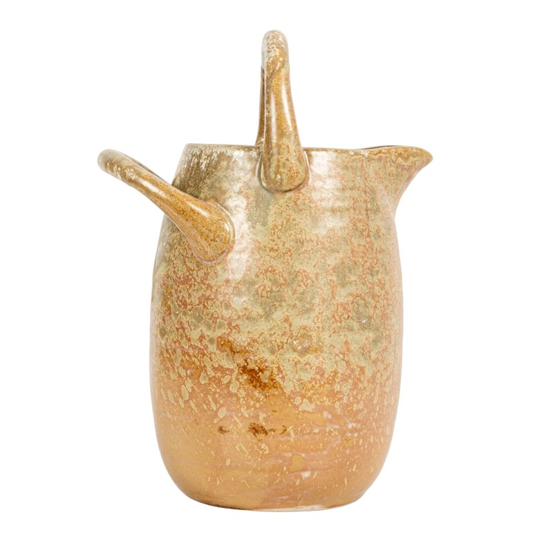 • Multicolor stoneware watering pitcher with handles in a reactive glaze