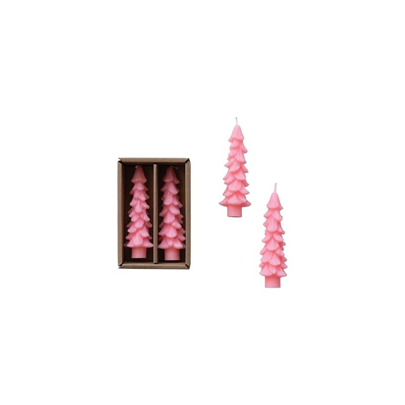Creative Co-Op Unscented Textured Tree Shaped Taper Candles in Box, Pink, Set of 2