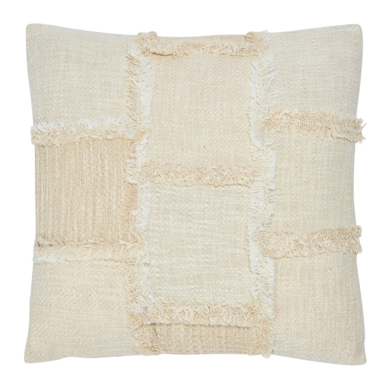 Creative Co-Op Woven Cotton and Wool Patchwork Frayed Edges Pillow, 18" L x 18" W x 2" H, Cream
