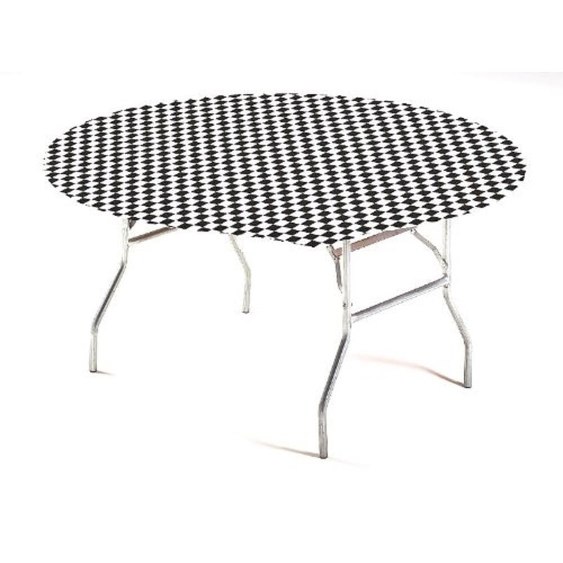 - Plastic table cover in classic black and white check