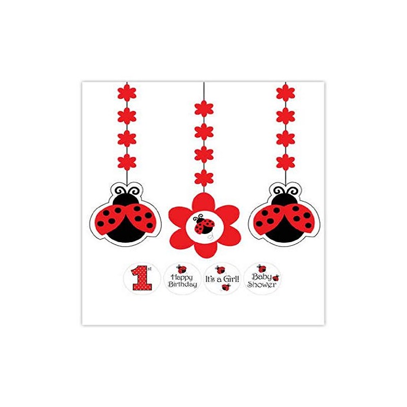 Creative Converting 995019, Ladybug Fancy Sticker Personalizable Hanging Decorations, 3 Ct, 36", Red