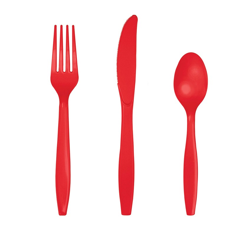 Creative Converting Assortment Plastic Cutlery, No Size, Classic Red