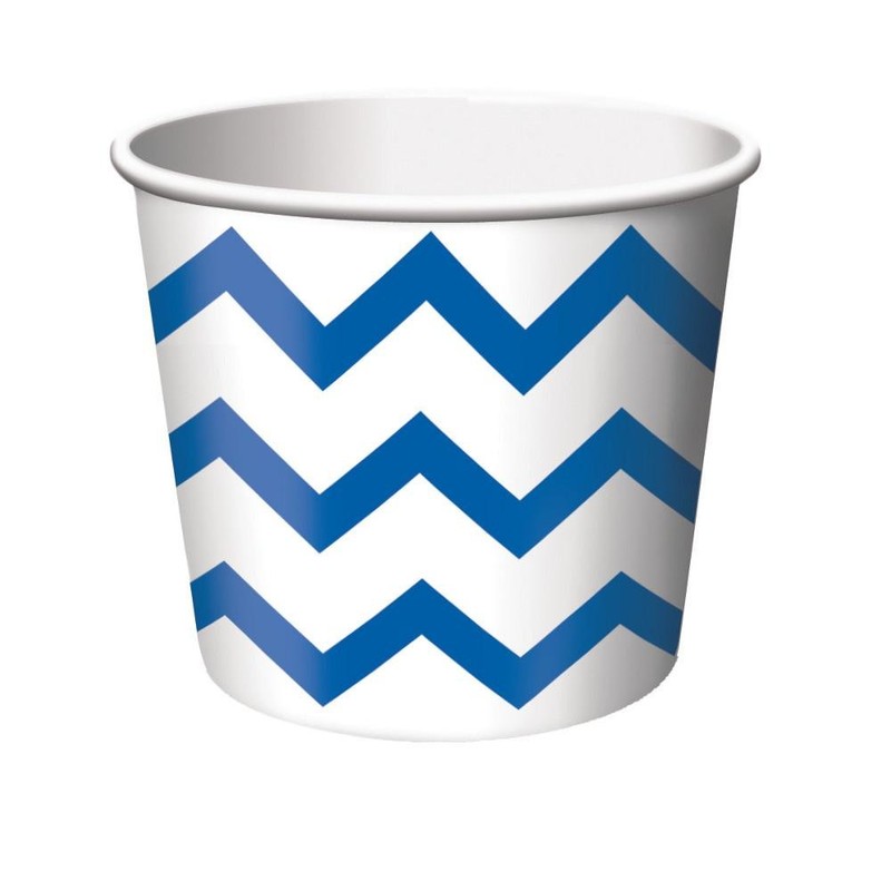 Serve fun treats and snacks at any celebration with our cobalt Chevron treat cups! Perfect for birthdays, anniversaries, baby showers or any event. White paper treat cups feature a cobalt blue Chevron pattern. Measures 3. 5" x 2. 5". Includes 6 paper treat cups per package.