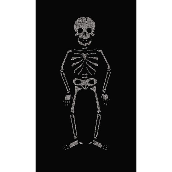 • Features a black favor bag with skeleton design