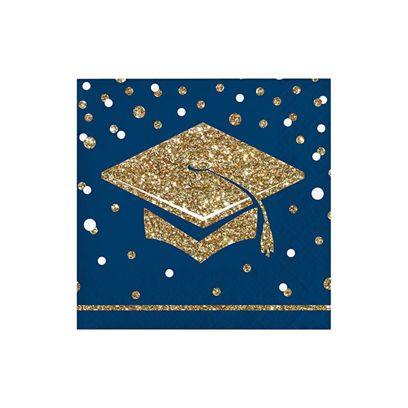 Creative Converting Glittering Grad Beverage Napkins, 5", Gold, Navy, and White