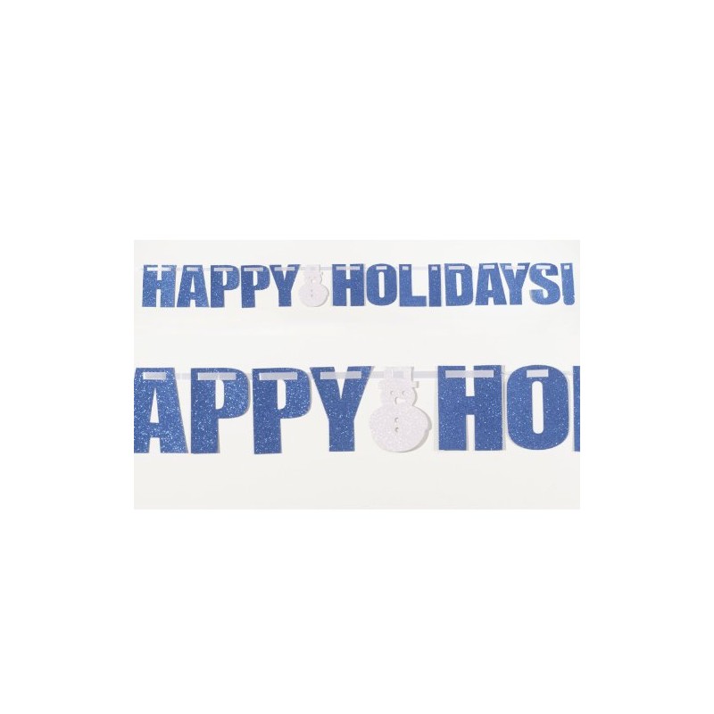 Morph your party area into a glittery holiday wonderland! This festive and colorful Happy Holidays Glitter Letter Banner is a must have for all of your seasonal celebrations. This 9 ft. letter banner offers a bold azure message of Happy Holidays! in all its glittery glory. Easy to hang and to store, this cheery, glistening letter banner should preside tall and proud above the party area; bringing smiles to the faces of all guests who behold it. Includes 1 per package.