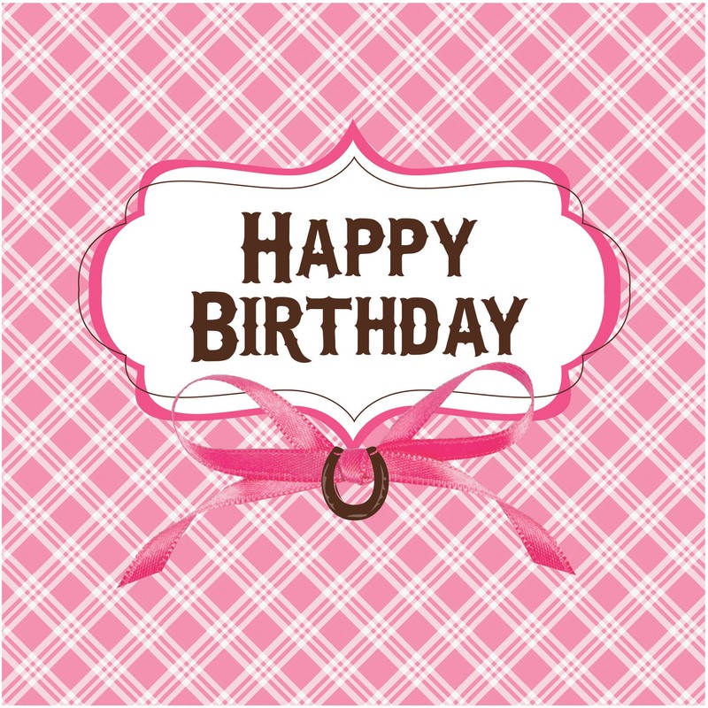 - Paper napkins in pink and white plaid design with a Happy Birthday word in the centre with a pink bow.