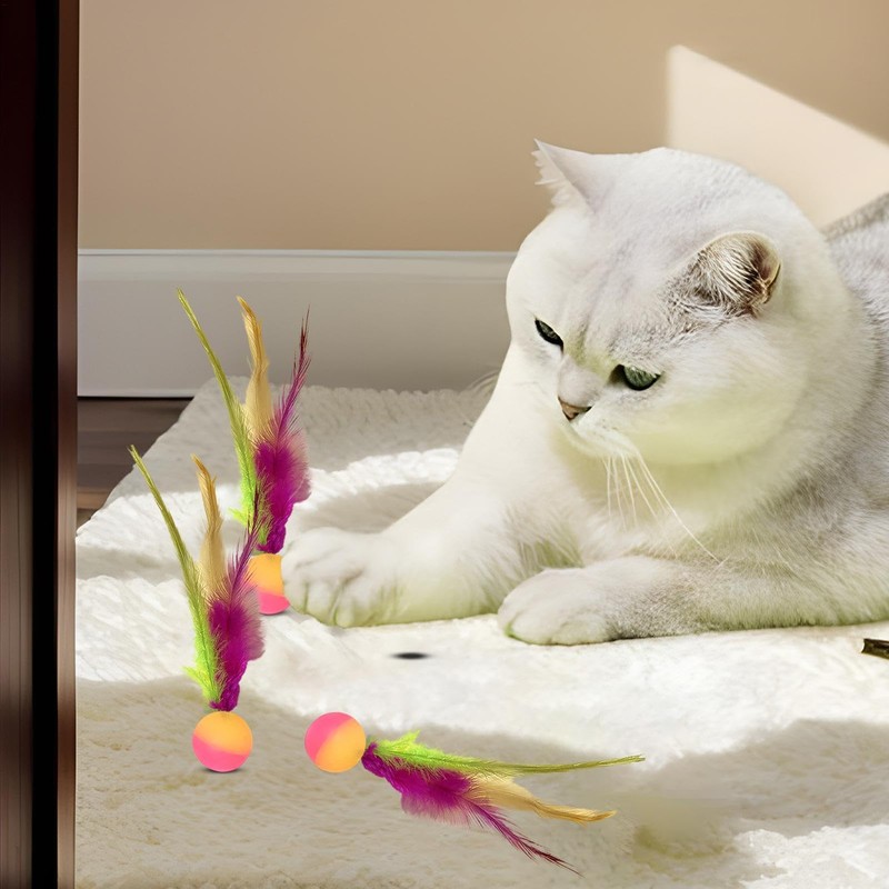 - Quiet Rolling: Designed to ensure a silent play, these Feather Elastic Balls Cat Toys glide smoothly, making almost no sound at all as they roll across the floor