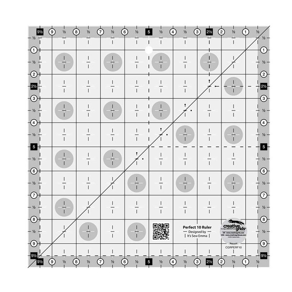 Creative Grids Perfect 10 Quilting Ruler – CGRPERF10 – Made in USA, 10in x 10in Square, Non-Slip Grip Acrylic Quilting, Sewing, Crafting, Patchwork Ruler for Measuring & Cutting Fabric
