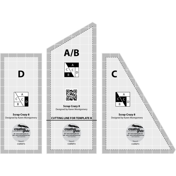 Creative Grids Scrap Crazy Templates Quilt Ruler – CGRMT4 – Made in USA, 6in x 9in, Non-Slip Grip Acrylic Quilting, Sewing, Crafting, Patchwork Ruler & Template