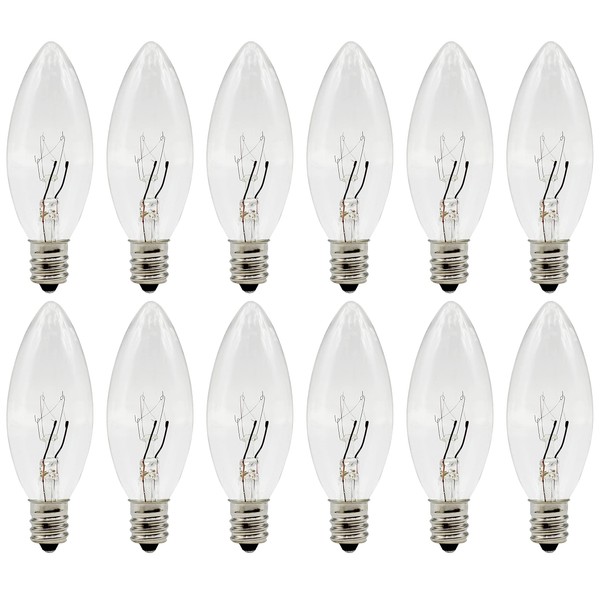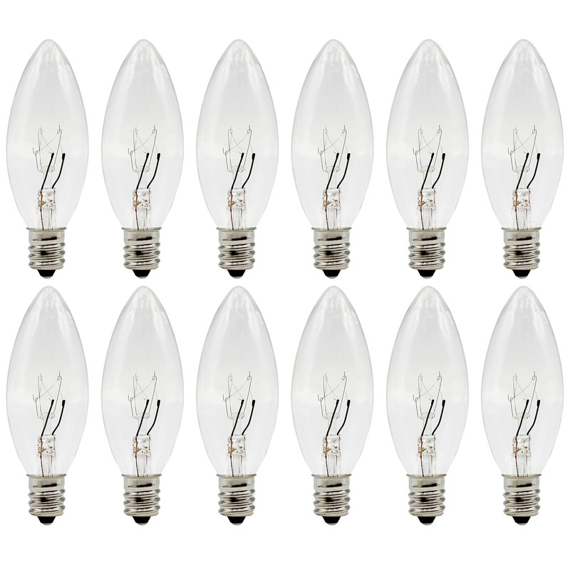 - Box of 12 Replacement Incandescent Light Bulbs for Electric Window Candles, night lights, Christmas light strings, chandeliers and any other indoor or outdoor lighting application.