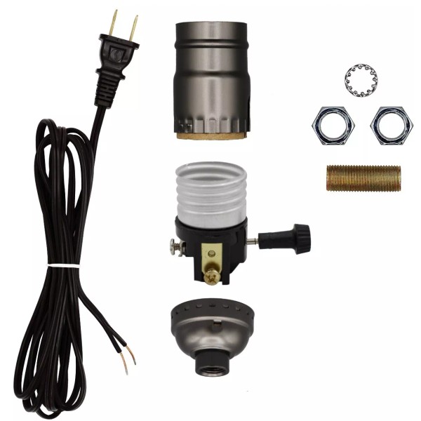 Creative Hobbies Make a Lamp Kit with Basic Hardware - Black Cord, Grey Socket