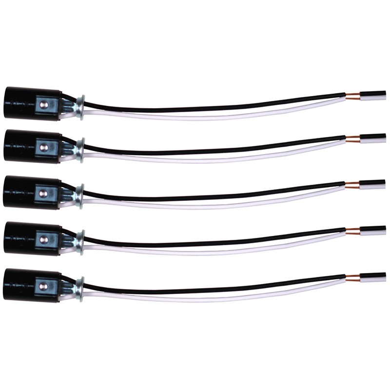 Creative Hobbies #SOCKETHW Candelabra Base Lamp Holder Light Socket, Keyless Phenolic, 6 Inch Wire Leads, Wholesale Pack of 5