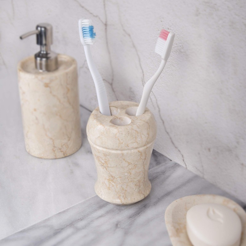 Creative Home Champagne Marble Fluted Toothbrush Holder