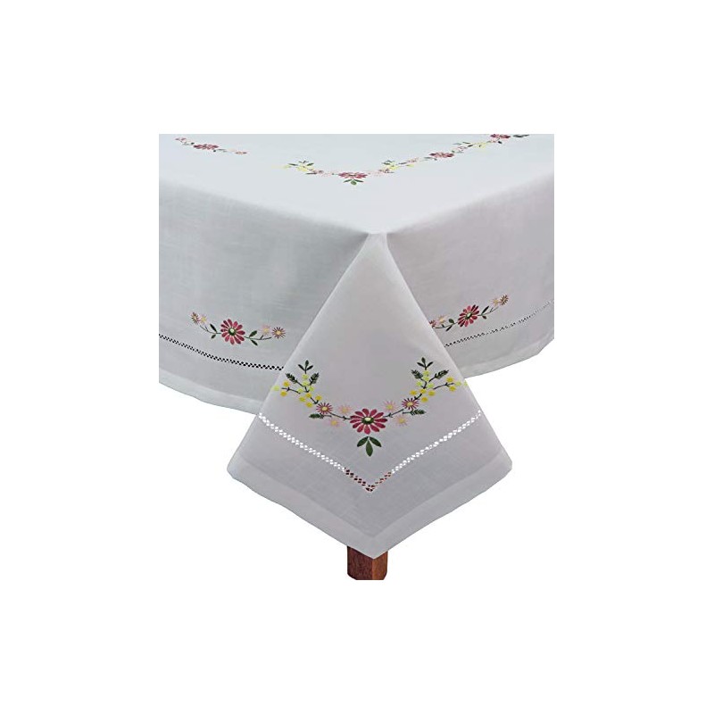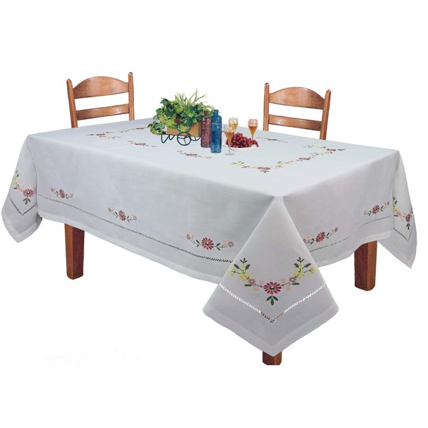 Creative Linens Hemstitched Embroidered Daisy Flower Tablecloth 70x120 Rectangular Table Cover White